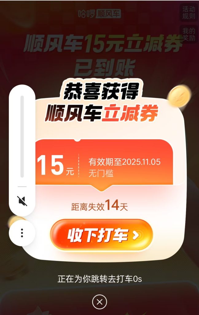哈啰顺风车优惠券领取入口(适用于全国所有城市)